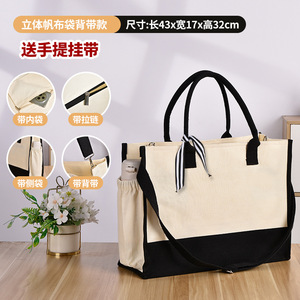 43*32*17肩带侧带+丝带+拉链+拉链内袋;米白帆布+黑色帆布