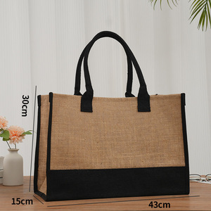 43*32*17肩带+丝带+拉链+拉链内袋;黄麻+黑底拼接