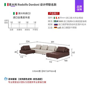 3.91*2.24mU型沙发/意大利进口半青皮+布艺