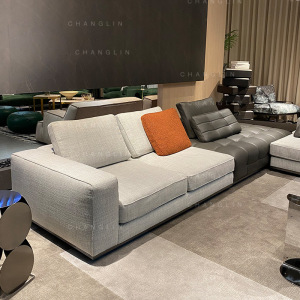 意式极简劳伦斯沙发客厅高级感现代简约多组合转角半青皮布艺沙发
