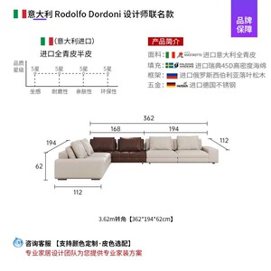 3.62*1.68m转角沙发/意大利进口半青皮+布艺
