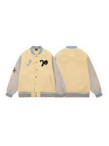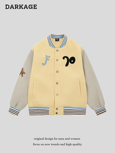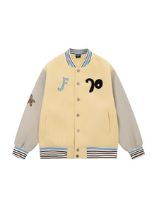 美式复古毛呢拼接棒球服女冬季新款宽松休闲撞色学院风外套