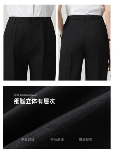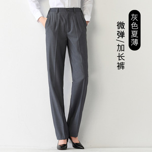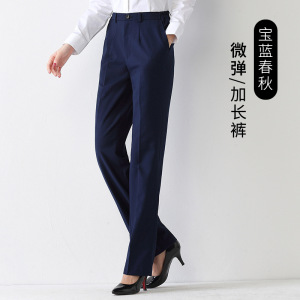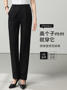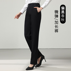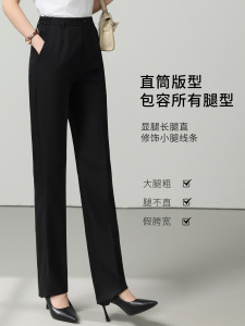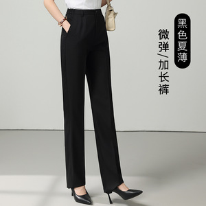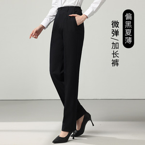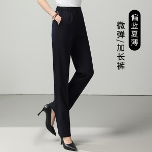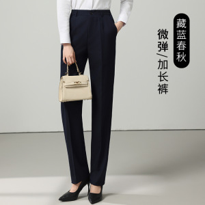 藏青色职业加长裤女夏季必备高腰显瘦垂感通勤直筒休闲正装裤