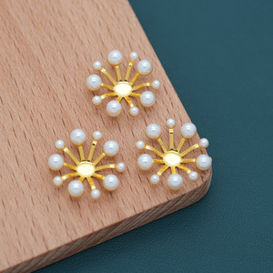 包邮铁质20mm五大五小花芯珠托配件古风头饰婚庆团扇diy材料批发
