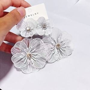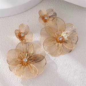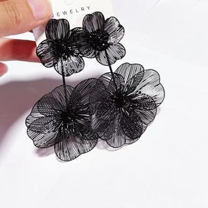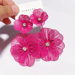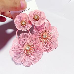 ヨーロッパとアメリカのカラースプレーペイントコンピュータピースイヤリング、ハイエンドの中空ダイヤモンド花びら上下タッセルイヤリング、クロスボーダーバッチ