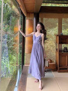 多巴胺绝美紫色吊带连衣裙女夏季520约会海岛边度假收腰沙滩裙子