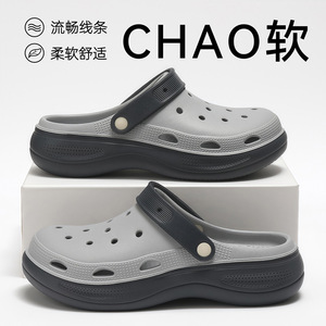 男性用クロックスシューズ 2025年夏新作 カップルアウターウェア 厚底EVA厚底つま先サンダル 女性用卸売