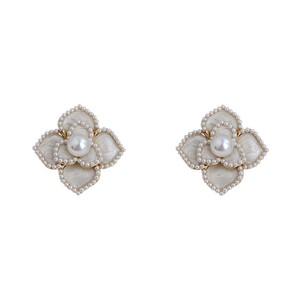 日常百搭山茶花耳钉法式复古耳环高级感优雅花朵珍珠耳饰女批发