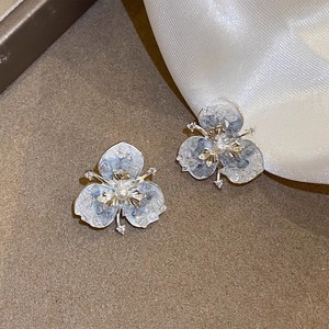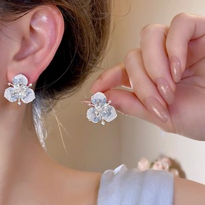 新款甜美锆石人造水晶仿珍珠花朵耳钉女轻奢百搭高级感气质耳环女
