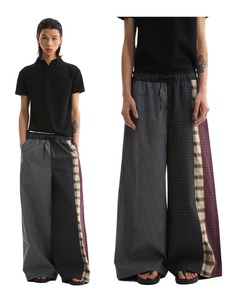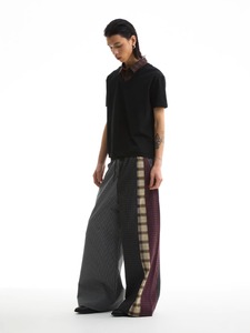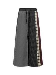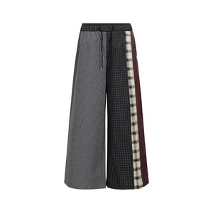 不规则格纹撞色拼接格子休闲裤男士2025夏季新款松紧腰阔腿长裤子