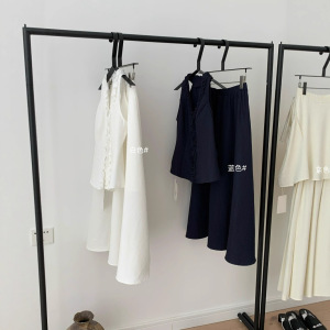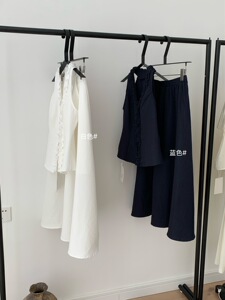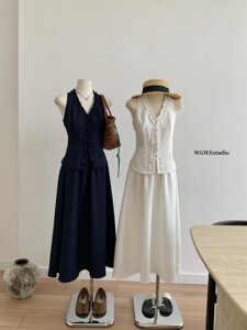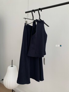【WGWE】6458挂脖木耳边肌理感无袖上衣+高腰垂感伞形半身裙套装