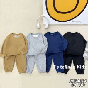 外贸童装卫衣两件套秋冬新品纯色儿童套装休闲运动潮款男女童套装