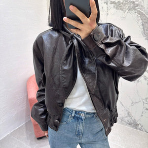 2025春秋新款时髦翻领兔耳朵领结宽松百搭显瘦高级感真皮皮衣女