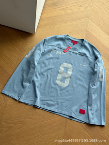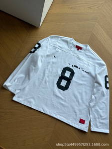 sup美式复古25ss新款8号梵文字体长袖宽松百搭休闲t恤卫衣男女款