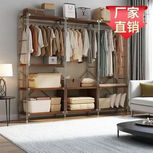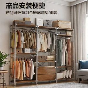 オープンワードローブハンガー洋服ラック和風寝室床置きコートラックウォークインクローゼット棚収納ラック