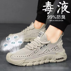 男鞋新款春夏季男士飞织透气休闲工装鞋厚底开车鞋户外运动跑步鞋