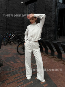 欧美2025春秋新款洋气百搭撞色休闲运动套装时尚侧开叉直筒裤套装