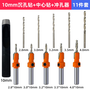10mm皿穴ドリル+センタードリル+パンチ(11本組)