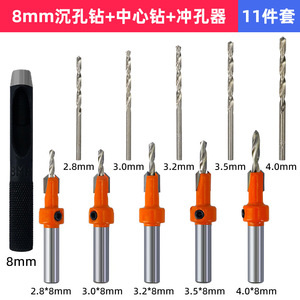 8mm皿穴ドリル+センタードリル+パンチ(11本組)