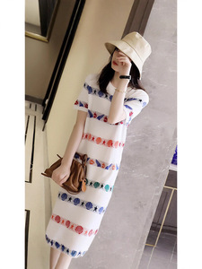 哥家商场同款女装2025夏季百搭撞色显瘦海洋提花直筒裙针织连衣裙