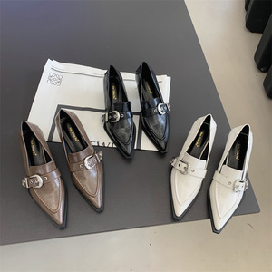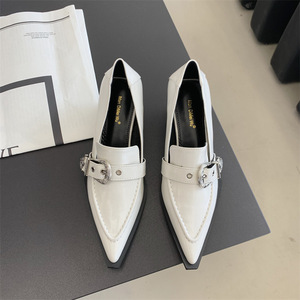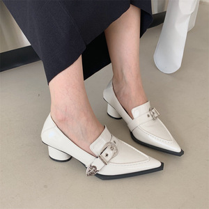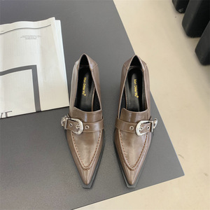 2025秋季新款韩版尖头粗高跟皮带扣单鞋中跟女鞋
