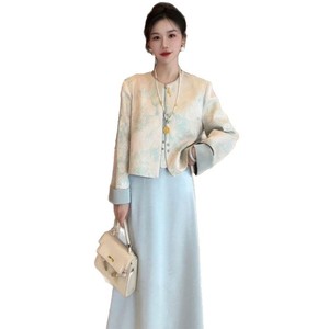 新中式套装国风女装新款开春超火外套唐装上衣裙子两件套春季