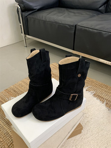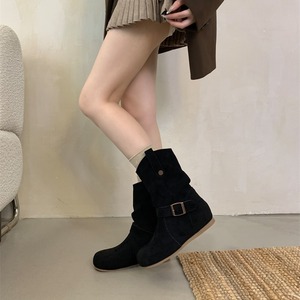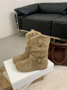 米庭内增高百搭复古堆堆靴女2025秋冬新款靴厚底圆头磨砂短靴