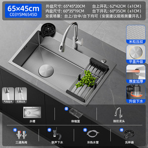 【米粒抗菌压纹槽】65x45cm标配丨抽拉龙头丨洗杯器丨净水龙头