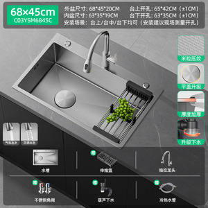 【米粒抗菌压纹槽】68x45cm标配丨抽拉龙头丨净水龙头