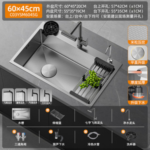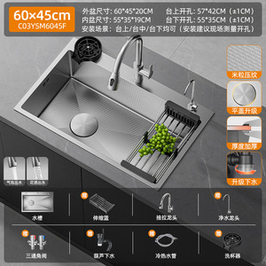 【米粒抗菌压纹槽】60x45cm标配丨四挡飞雨抽拉龙头丨洗杯器丨净水龙头