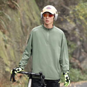 吸湿速乾ハーフジップ長袖Tシャツメンズアウトドアスポーツサイクリングハイキングトレーニングウェアインナーレイヤリングシャツトップ