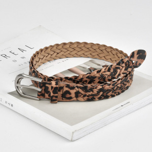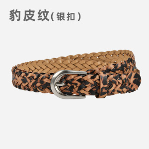 跨境欧美女生连衣裙装饰腰带个性豹纹潮流小众免打孔编织皮带女士