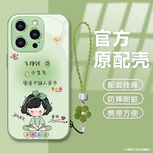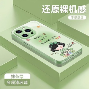 多挣钱绿衣女孩适用苹果16/华为P70/vivo/oppo金属漆玻璃手机壳套