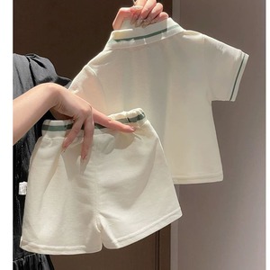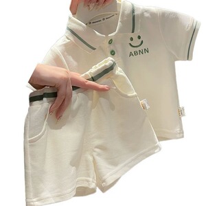 夏の幼児漫画半袖スーツ子供ポロ襟韓国風ショートパンツカジュアルツーピースお出かけ服トレンディ