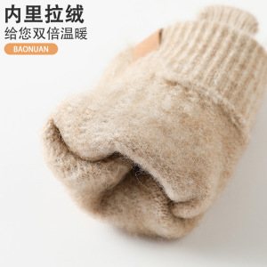 秋冬の男性と女性のためのニット手袋、ベルベットの厚みのある防寒指手袋、豪華な厚みのある裏地の新しい手袋