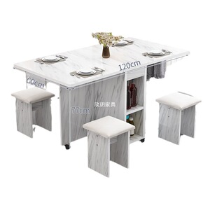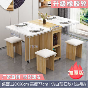 折叠餐桌家用小户型可移动带轮多功能一桌四椅简易长方形吃饭桌子
