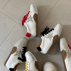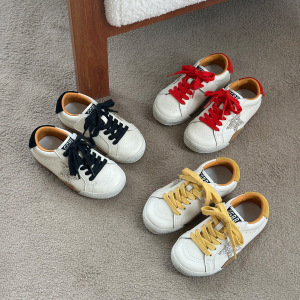 手作りの古い韓国風子供用汚れた靴 2025 秋女の子スパンコール五芒星カジュアルスニーカー男の子白靴