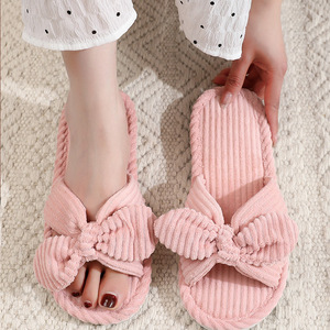 クロスボーダーアマゾンガールコットンスリッパINSリボンホームぬいぐるみスリッパ屋内毛皮のようなスリッパ女性卸売