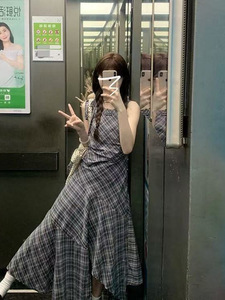 法式无袖不规则格子背心连衣裙子女夏季2025年新款小个子气质长裙