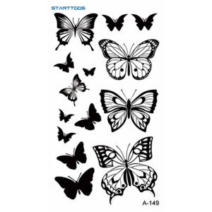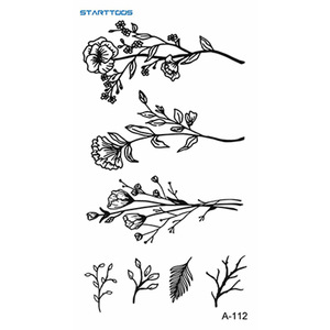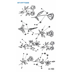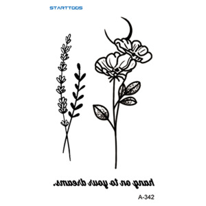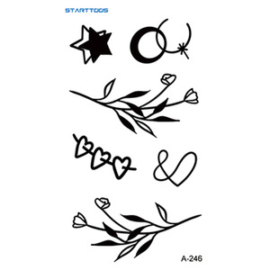 跨境新款黑色简约风高级感花草星月纹身贴mini小图案半永久迷你