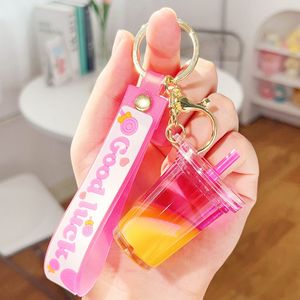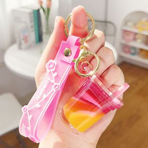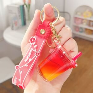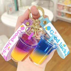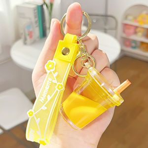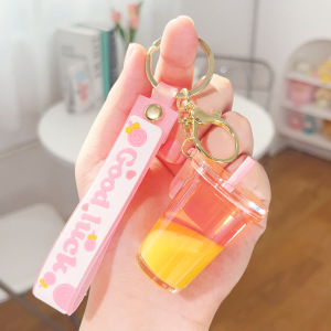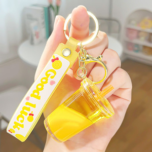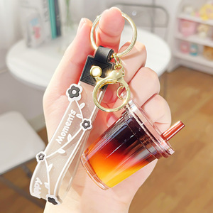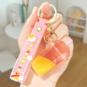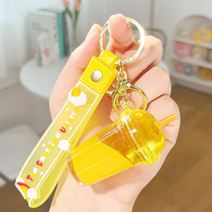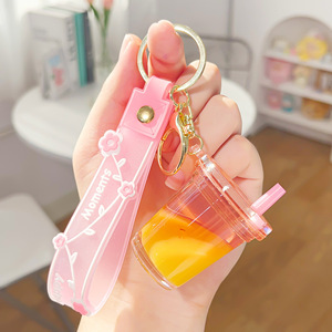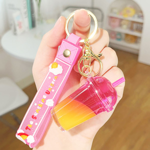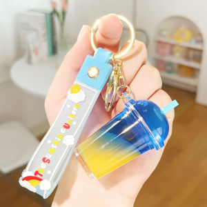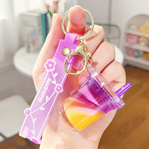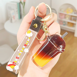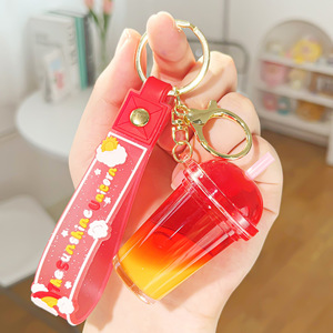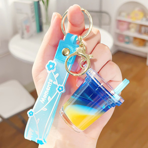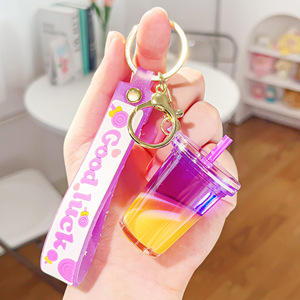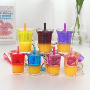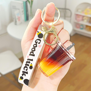 奶茶杯亚克力创意钥匙扣咖啡杯液体流沙挂件精致可爱配饰背包挂饰