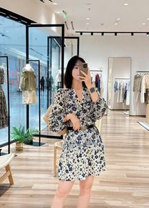 100%富丽邹碎花裙25年早秋新款波西米亚风C领木耳边灯笼袖连衣裙