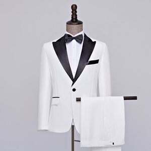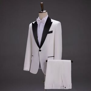 白色黑领【西服+裤子+领结】