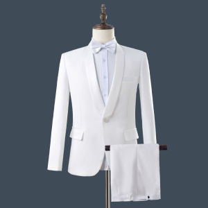 方领白色【西服+裤子+领结】