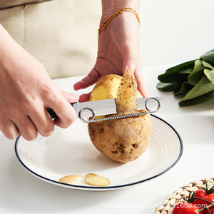 削皮刀二合一可调切片器跨境弹簧不锈钢牛排圆头多功能小刀水果刀