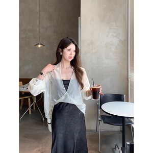 跨境天丝防晒衣衬衫外套女夏新款防紫外线配吊带外搭轻薄雪纺上衣