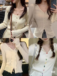 广州十三行秋冬季新款清新甜美羊绒开衫毛衣设计感针织衫女装批发