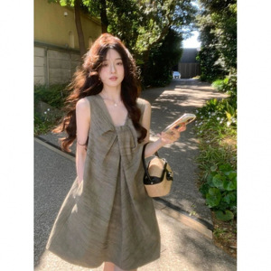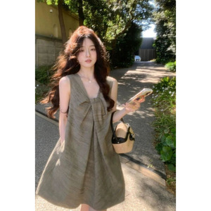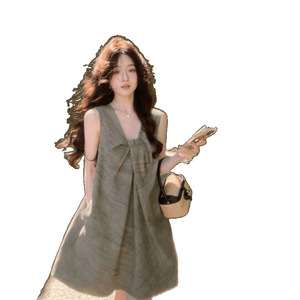 小个子法式复古设计感扭结背心连衣裙女2025夏季新款宽松时尚短裙