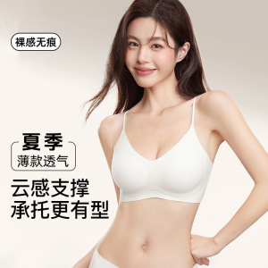 无痕粉底液内衣女夏薄款小胸聚拢防下垂无钢圈凉感背心式文胸胸罩