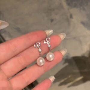 法式复古珍珠吊坠耳环女小众字母CD珍珠耳环秋冬氛围感流苏耳坠